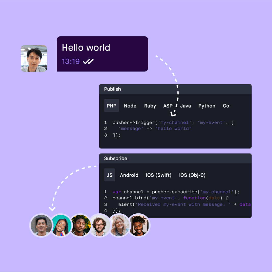 Our flexible, hosted pub/sub messaging API is reliable and easy to use. With 40+ SDKs, Pusher Channels drops right into your stack. You create the experience. We’ll take care of the infrastructure.